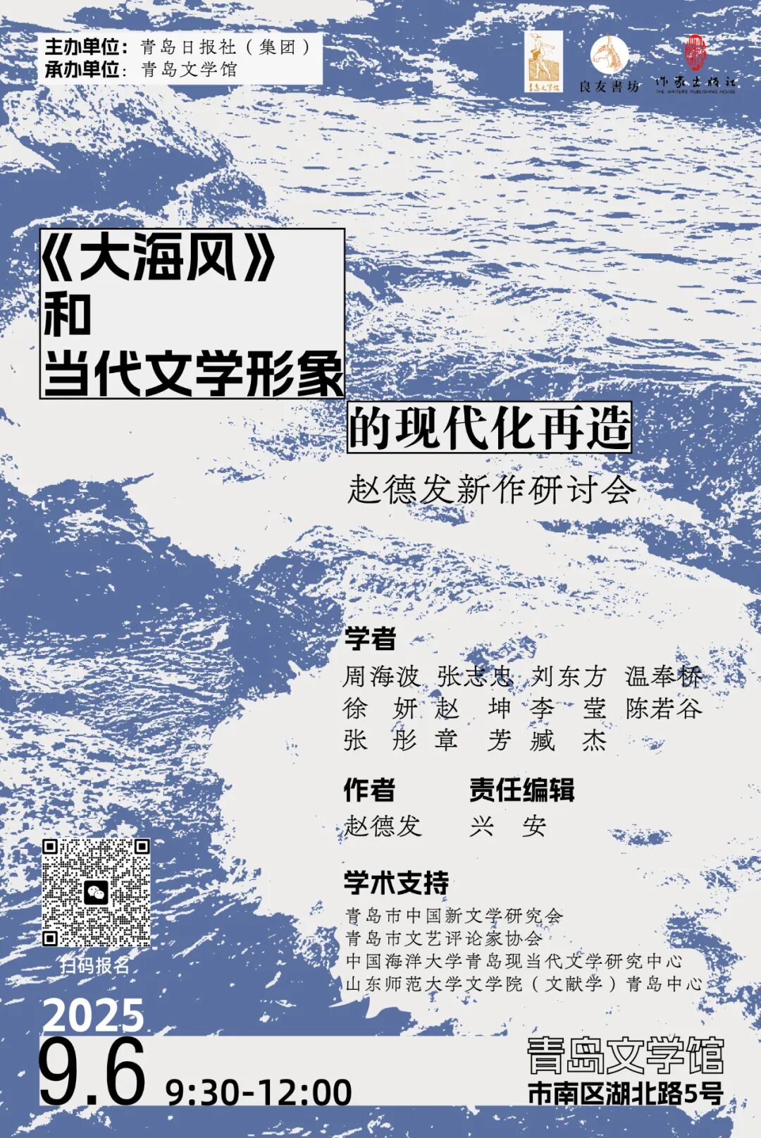 作为2025年下半年青岛文学馆开馆十周年暨全国作家交流活动的首发活动,9月6日上午9:30,由青岛日报社(集团)主办,青岛文学馆承办的“《大海风》和当代文学形象的现代化再造——赵德发新作研讨会”将在青岛文学馆举办,作家赵德发、本书责任编辑兴安与众位学界嘉宾齐聚现场,共同探讨《大海风》历史书写中的当代精神,挖掘海洋文明与现代性的密切联系,激活地方性文学的学术价值。