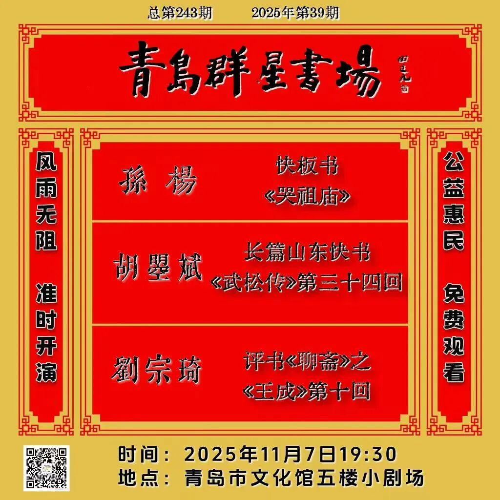 本周五晚青岛“群星书场”再次与您欢乐相约!精彩内容,欢乐无限,期待您的光临。
