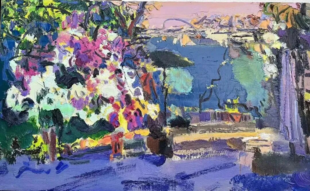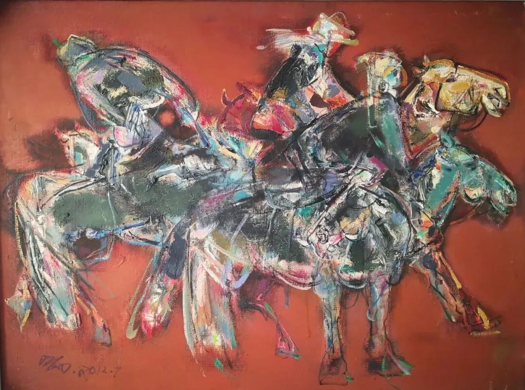艺术,是心灵的栖居之地。当画笔触及画布,色彩流淌成诗,艺术家便在其中构筑起自己的精神家园。妥木斯先生的艺术探索,始终围绕着“归心”这一主题展开。他的作品,无论是早期的写实风格,还是后期的意象化表达,都透露出一种对精神家园的寻觅。这种寻觅,既是个人的,亦是民族的。他笔下的草原,不仅是地理意义上的内蒙古,更是文化意义上的精神原乡。