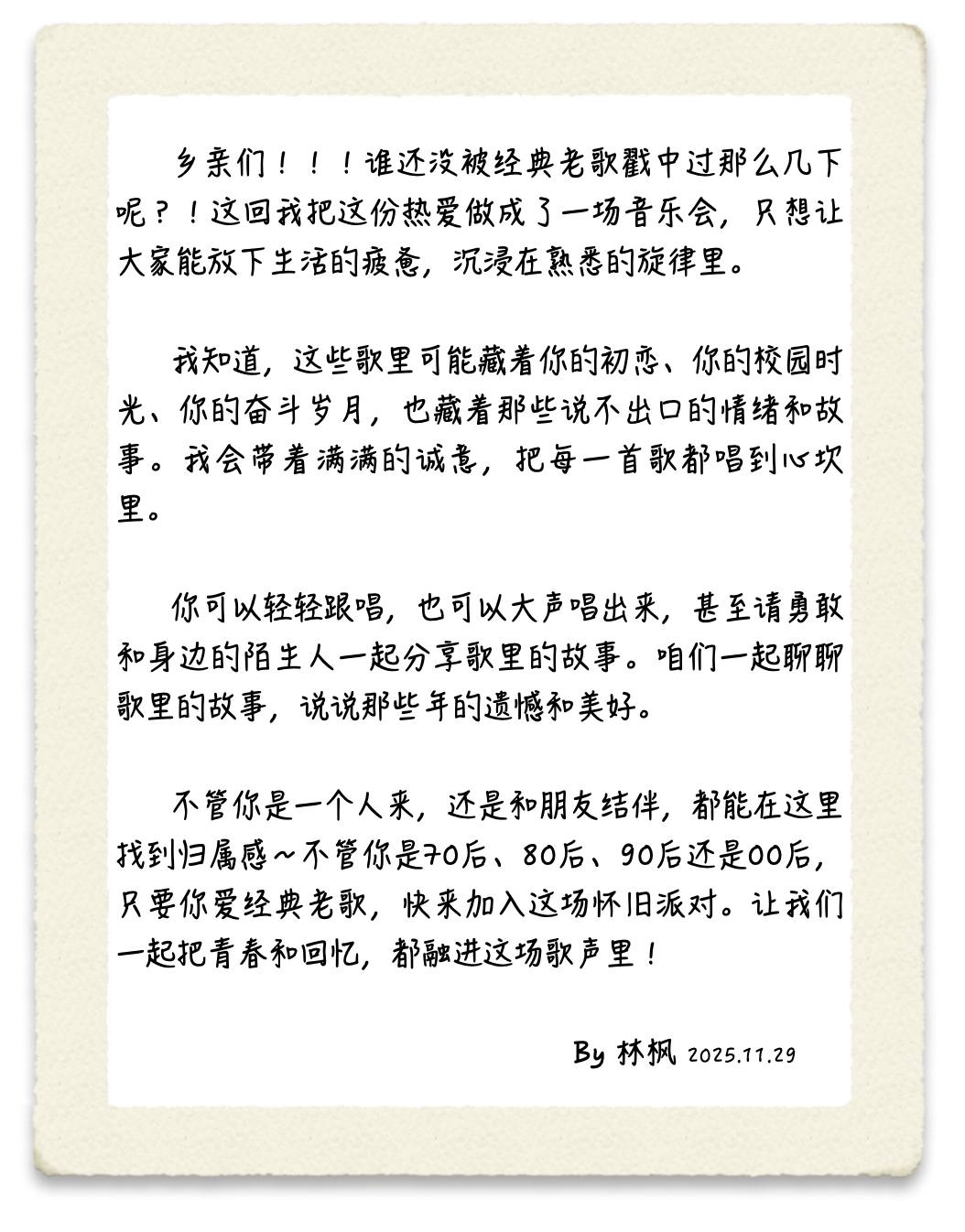 🕯️ 沉浸式Live氛围: 无论你是想安静聆听,还是想大声合唱,这里都有你的位置。