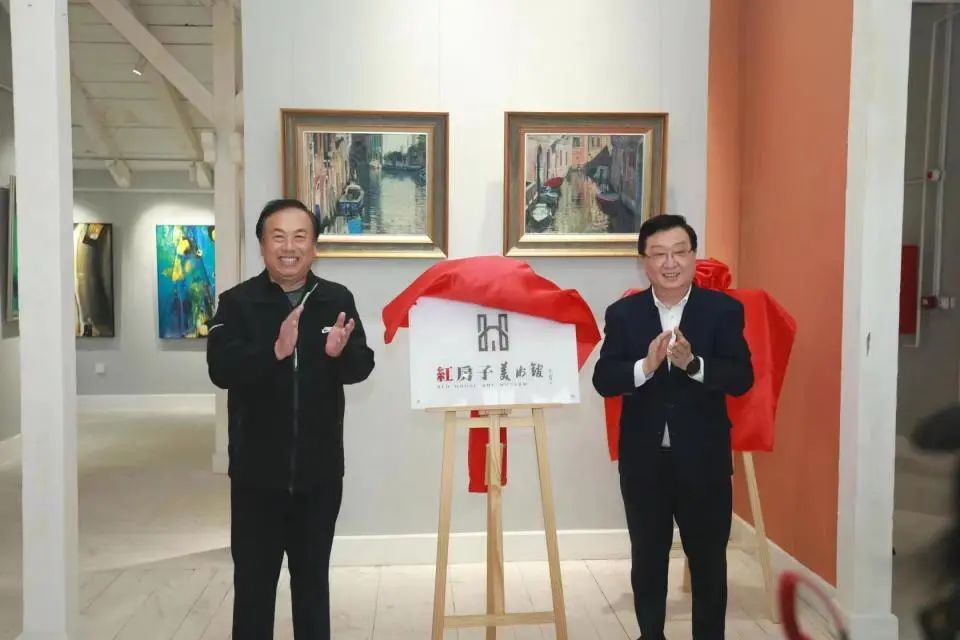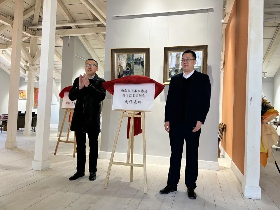 青岛饮料集团党委书记、董事长王达,山东省美术家协会当代艺术委员会副主任林建业为红房子美术馆揭牌;青岛市文物局副局长陈啟,青岛饮料集团党委副书记贾云春为山东省美术家协会当代艺术委员会创作基地揭牌。