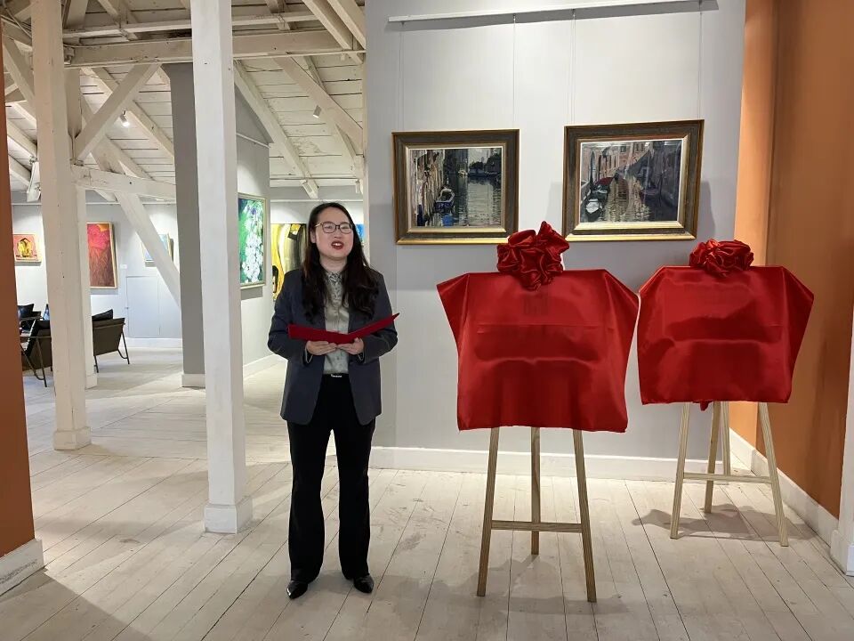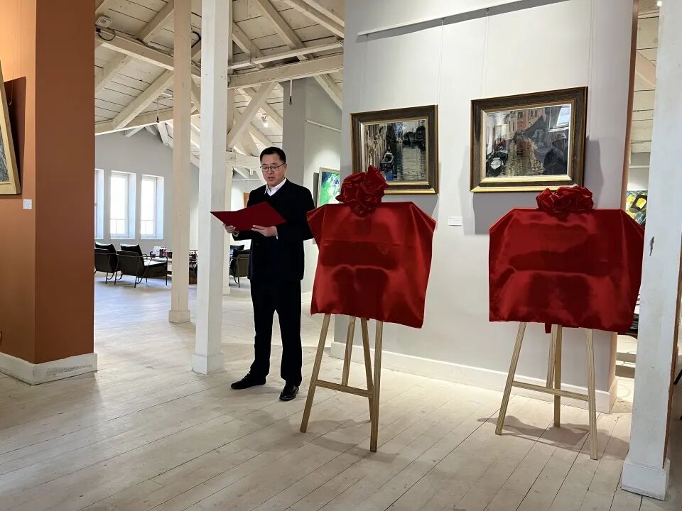 仪式上,青岛饮料集团党委副书记贾云春代表主办方青岛饮料集团有限公司致欢迎辞,感谢山东省美术家协会,以及青岛市、市南区两级文旅主管部门和各位画家的鼎力支持,红房子美术馆在很短的时间内得以顺利开馆。