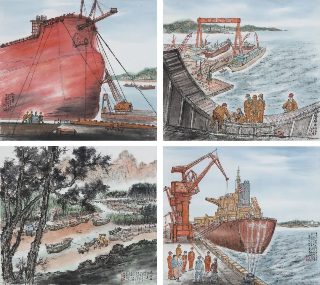 张风塘《复工复产组画》60cm×45cm×4