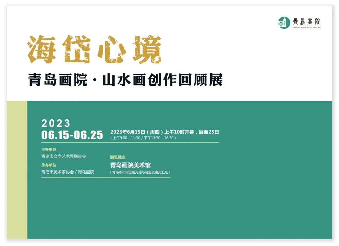 “海岱心境—青岛画院山水画创作回顾展”兹定于2023年6月15日(周四)上午10时,在青岛画院美术馆举行开幕式,诚邀拨冗莅临!