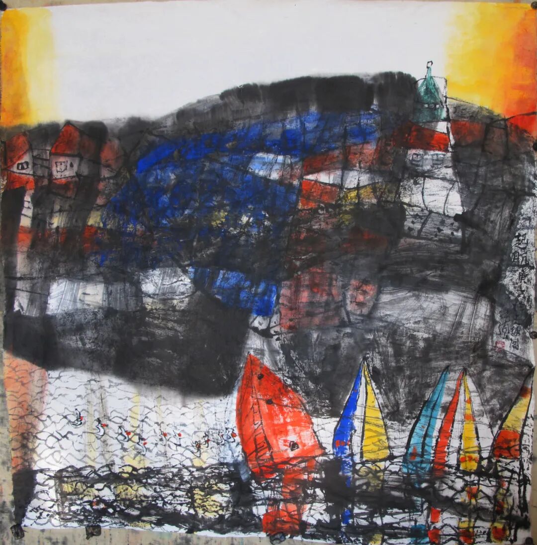 谢添《渔港晨晖》240×190cm