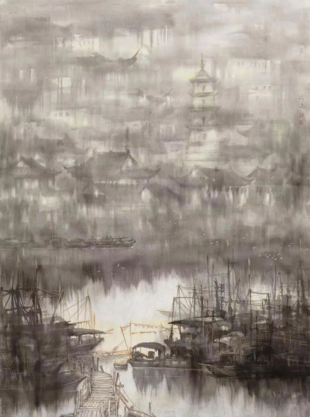 张风塘《青岛港》180cm×145cm
