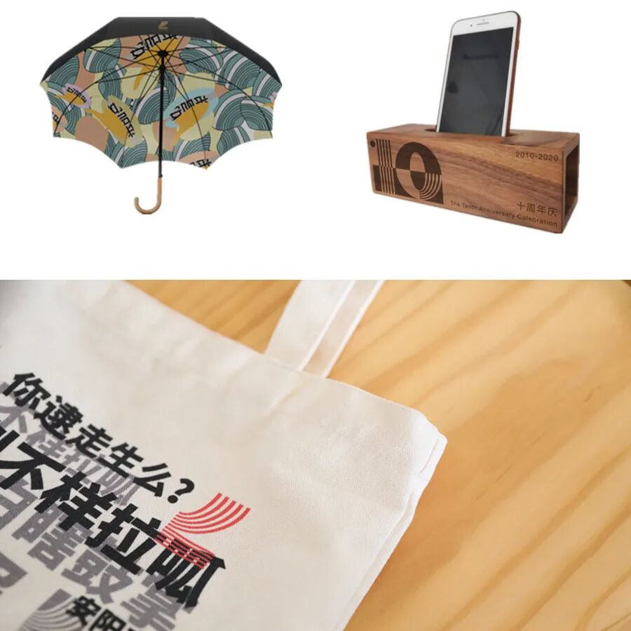 (图:扩音器、雨伞、帆布包)