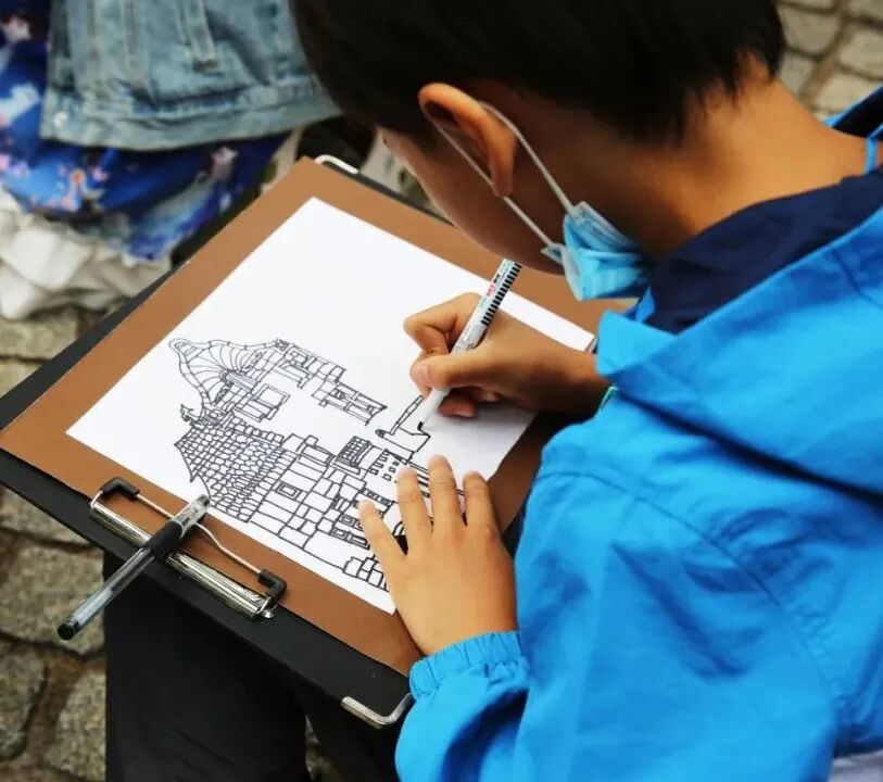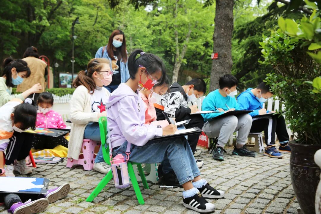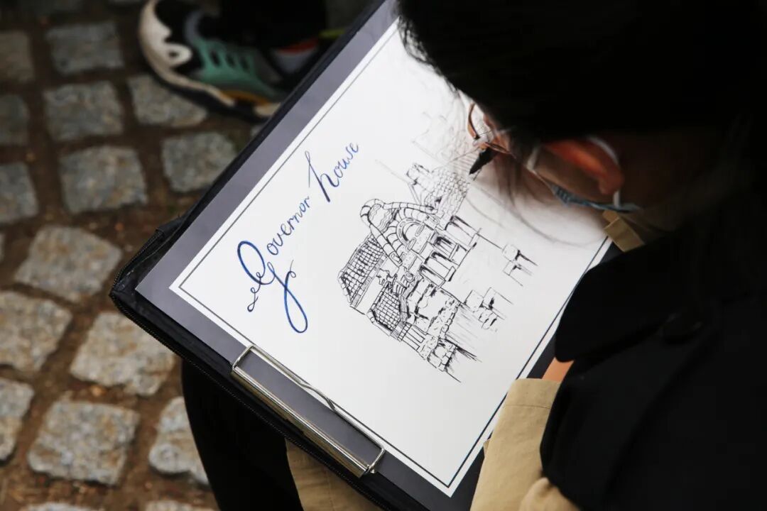 在总督花园喷泉旁,绘画爱好者们支起画板、拿起画笔,共同描绘总督楼西立面的壮美图景。
