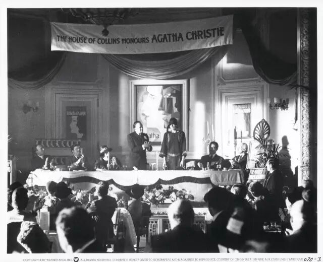电影《难补情天恨》剧照 (1979)。剧中阿加莎(瓦妮莎·雷德格瑞夫饰演)在接受因小说《罗杰疑案》的成功而授予她的荣誉