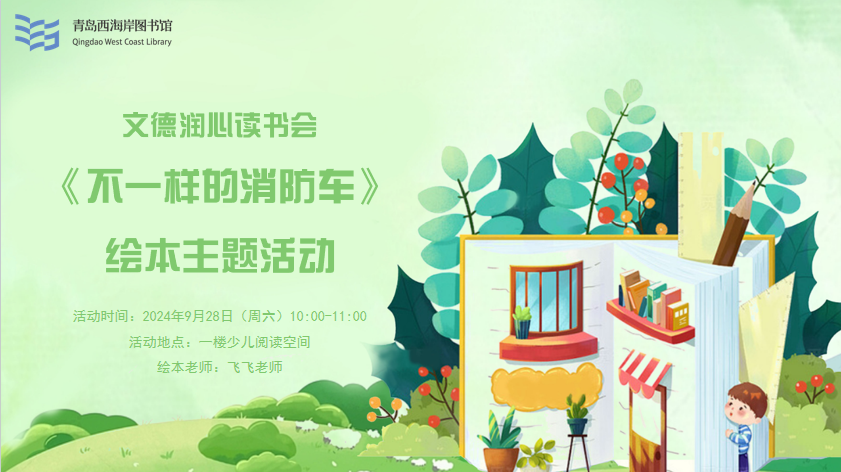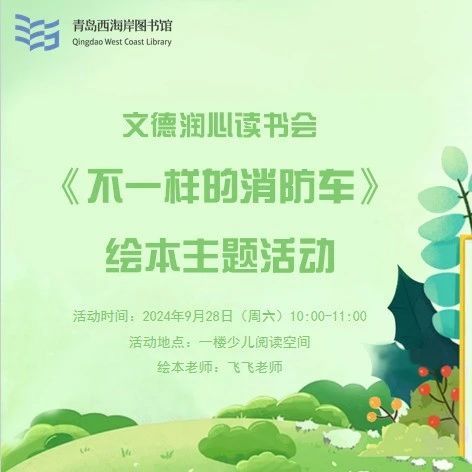 9月28日(本周六),青岛西海岸图书馆邀请高级家庭教育指导师飞飞老师,开展《不一样的消防车》绘本主题活动,让小读者们在阅读中了解消防车的“秘密”!
