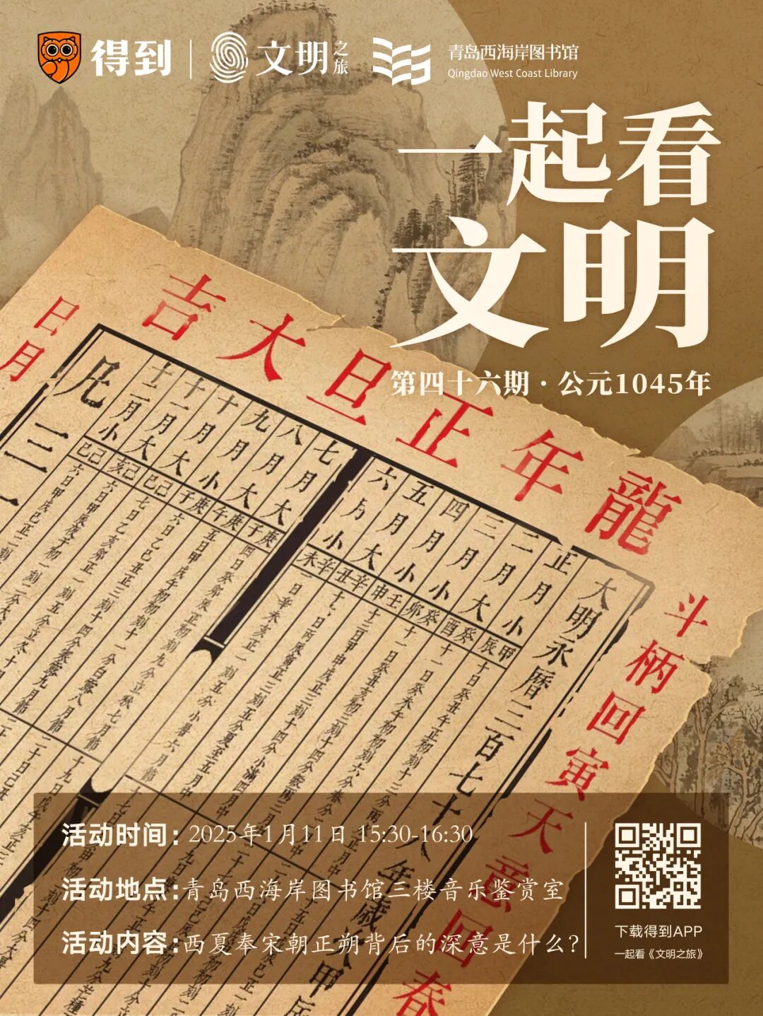 这次让我们一起携手赴约,穿越到公元1045年。报名本期《文明之旅》观影会,跟随罗老师一起,看看西夏奉宋朝正朔这个事背后的深意。