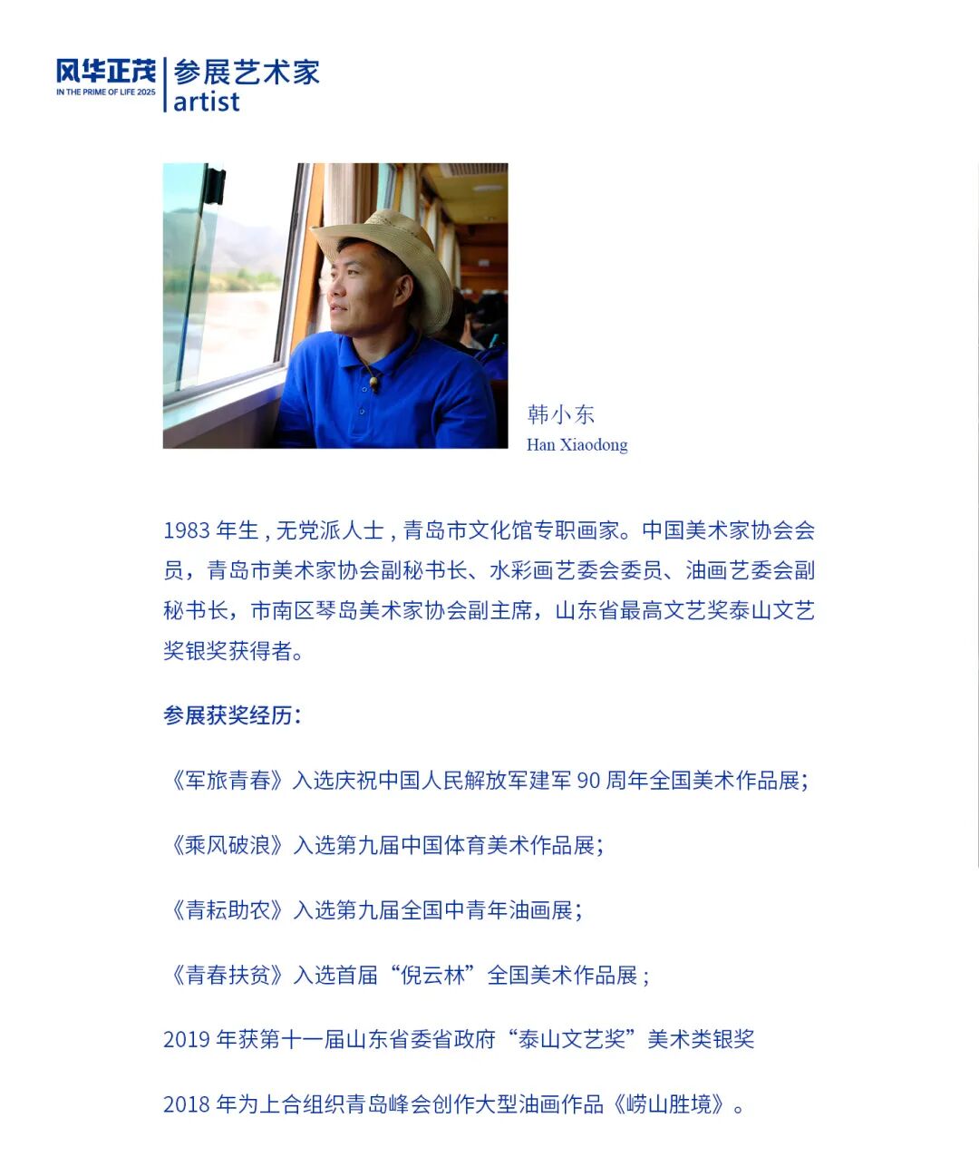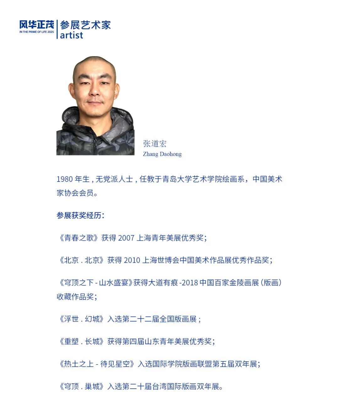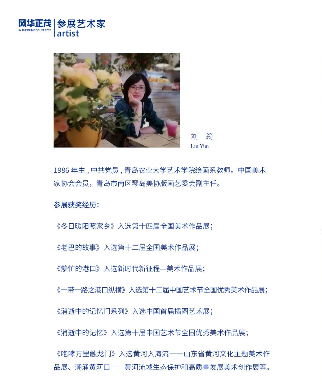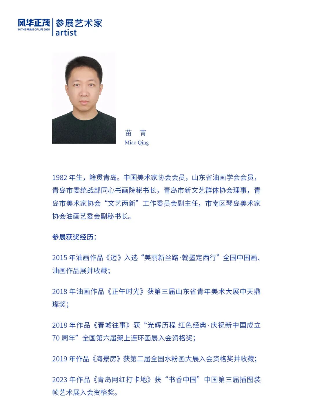 “风华正茂——2025青岛市青年美术作品系列展”是由市南区文学艺术界联合会、青岛市新文艺群体协会、青岛国际会议中心联合主办,青岛市新文艺群体协会美术专业委员会和市南区琴岛美术家协会承办的展览品牌。