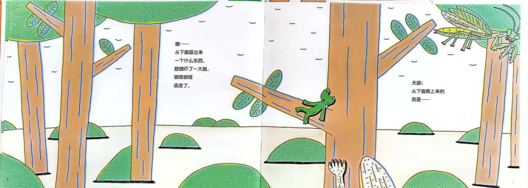 螳螂为什么飞走了呢?啊哈,原来是蜥蜴来了……
