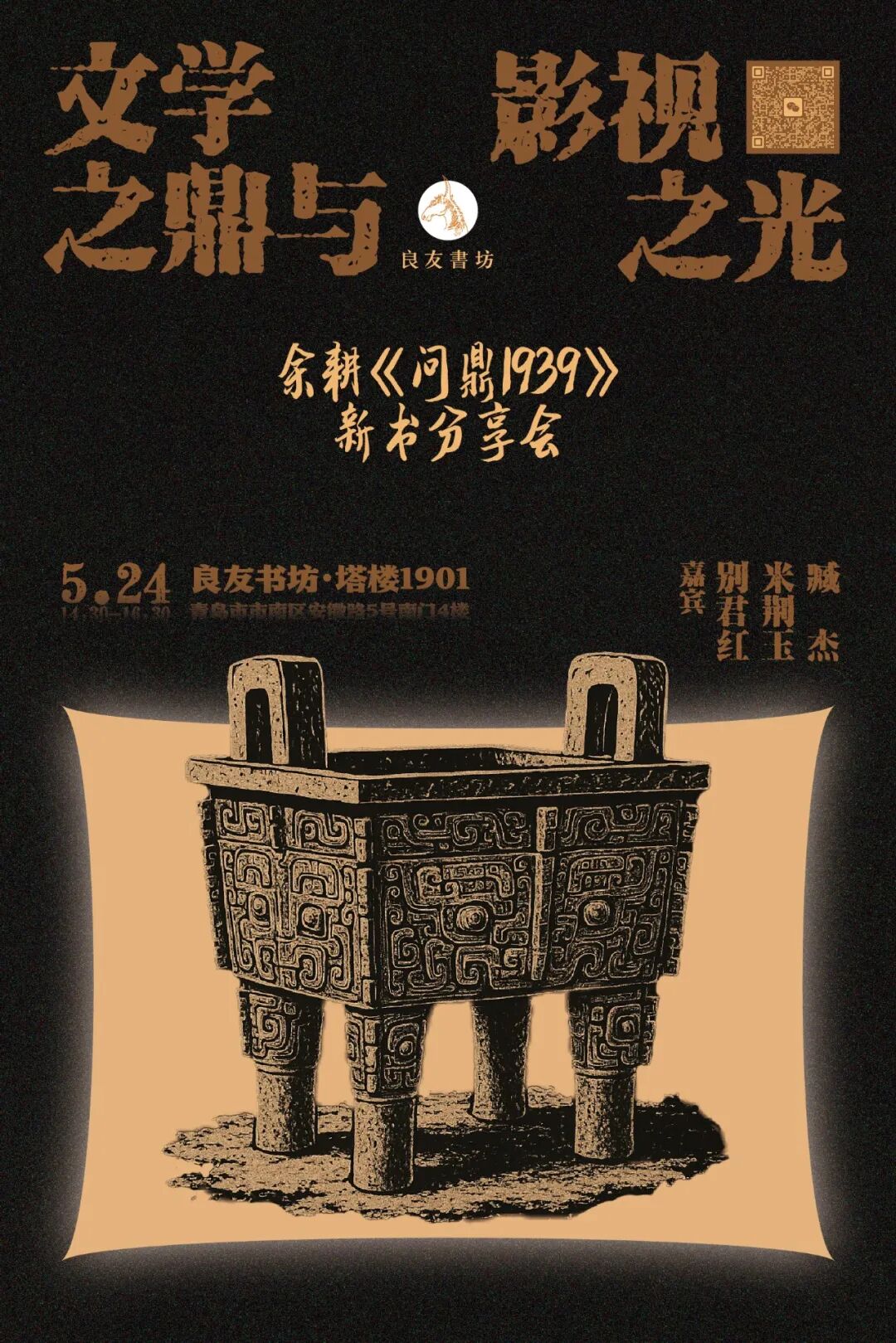 5月24日(周六)下午2:30,余耕做客良友书坊·塔楼1901,举办《问鼎1939》新书分享会。畅销小说如何变身爆款影视?原著改编的核心挑战在哪里?文本与视觉语言的转换密码又是什么?欢迎来约,共赴一场从文学到影视的“破圈”之旅。