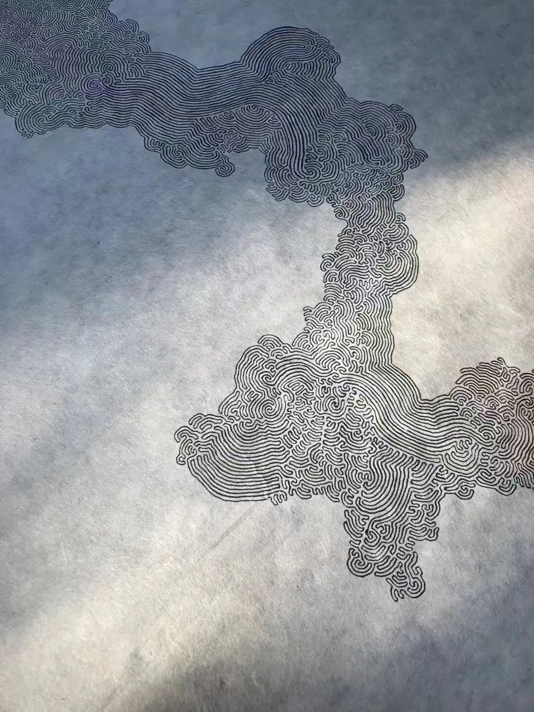 杜婕身上总有种自我觉知的佛性。杜婕始终追求一种极度自由的状态,用她的话说:“艺术的边界不是墙,是等着被推开的门。”她的作品看似是平涂的色彩平面,近看却藏着玄机。她把国画“白描”的线性传统揉进小幅画作中,在色块上勾勒出密密麻麻的细线条。你看到的其实是同一条线,而线始终不断,因此她把每幅作品的创作时长作为作品的题目。这些线有的像蚕丝缠成的网,有的像水流冲过的痕,冷寂的色块突然有了呼吸。从2002年开始至今,23年的时间里,杜婕一直在这根线里缠缠绕绕,探寻着自己,也探寻着人生的意义——她希望用作品激发自己,也激发观者身上的佛性,以及自我觉知的探讨。