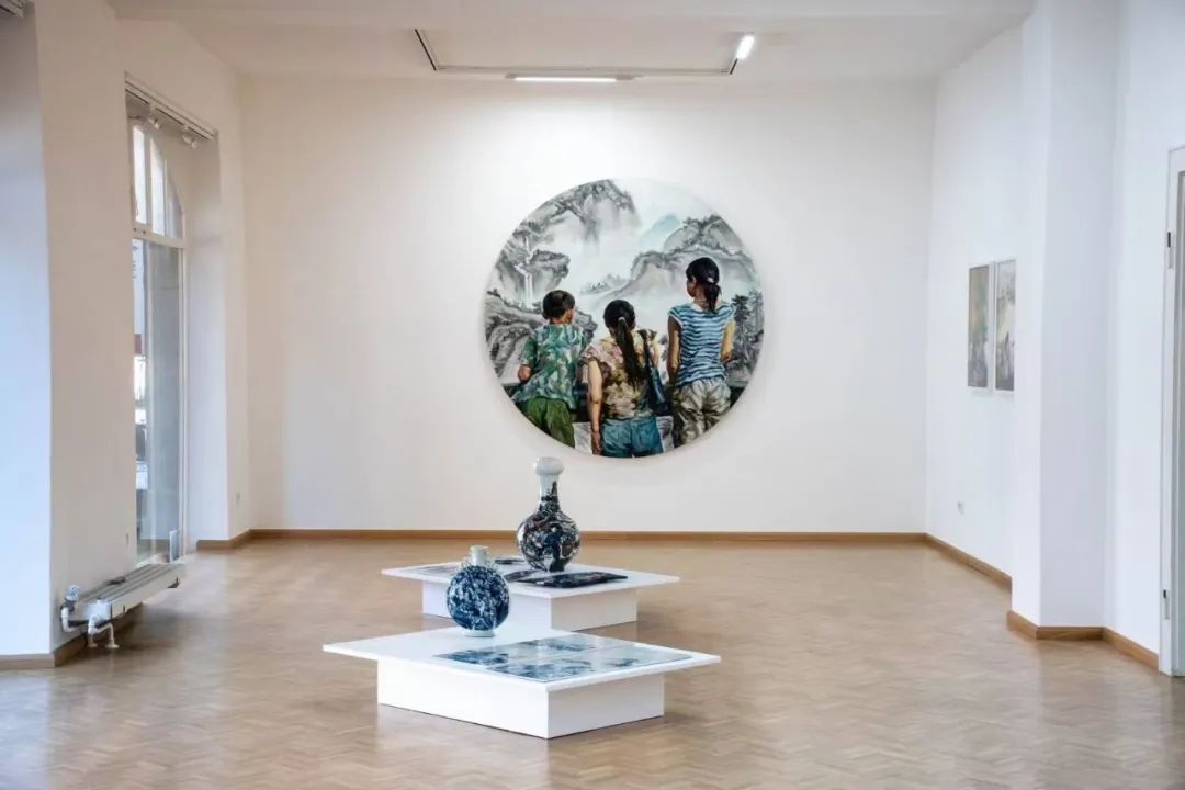 黄敏的创作,始终贴着“生活”的肌理。她提到,自己的祖父擅长国画,耳濡目染,黄敏也在创作中形成了独特风格 —— 于水墨风景中融入现代人物,通过 “画中画” 的构图手法,让传统与现实在画面中形成对话与对立。她的作品既有对整个中国的思考,也有对某一具体物象的观察。她不追求宏大的叙事,却像位耐心的“日常考古者”。她的作品关注中国普通人的生存处境和欲望,她用最朴拙的方式描绘着生活中的一切,扒开被人们忽略的情感褶皱。这次展出的《风景》系列,黄敏把现实中的人物景物造像描绘在瓷片上,青花釉料变成了她描绘这嬉戏关系的载体,把“日常”烧进了时光里。都说她的青花瓷板作品有着“烟火气的诗意”,其实她只是蹲下身,认真触摸那些被匆忙生活磨平的棱角。