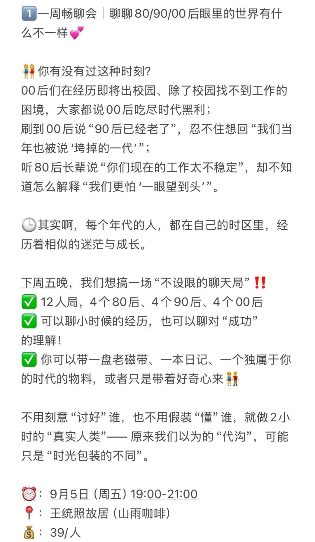 下周五晚,我们想搞一场“不设限的聊天局”‼️