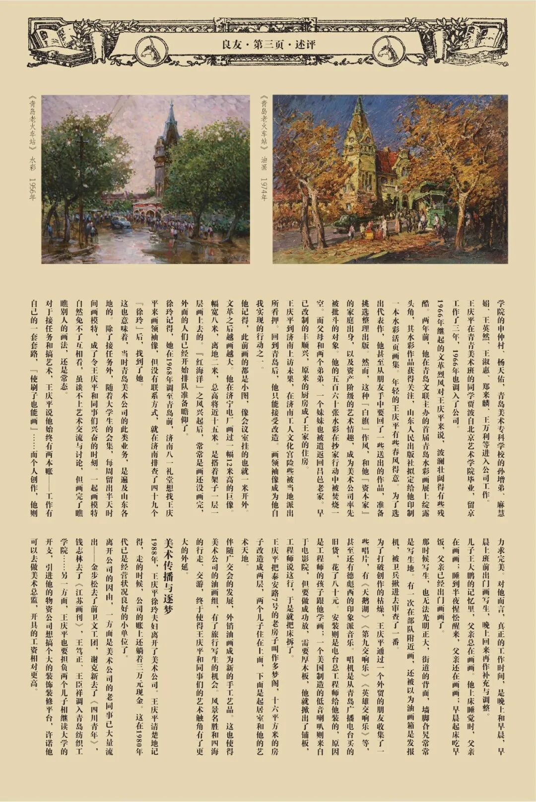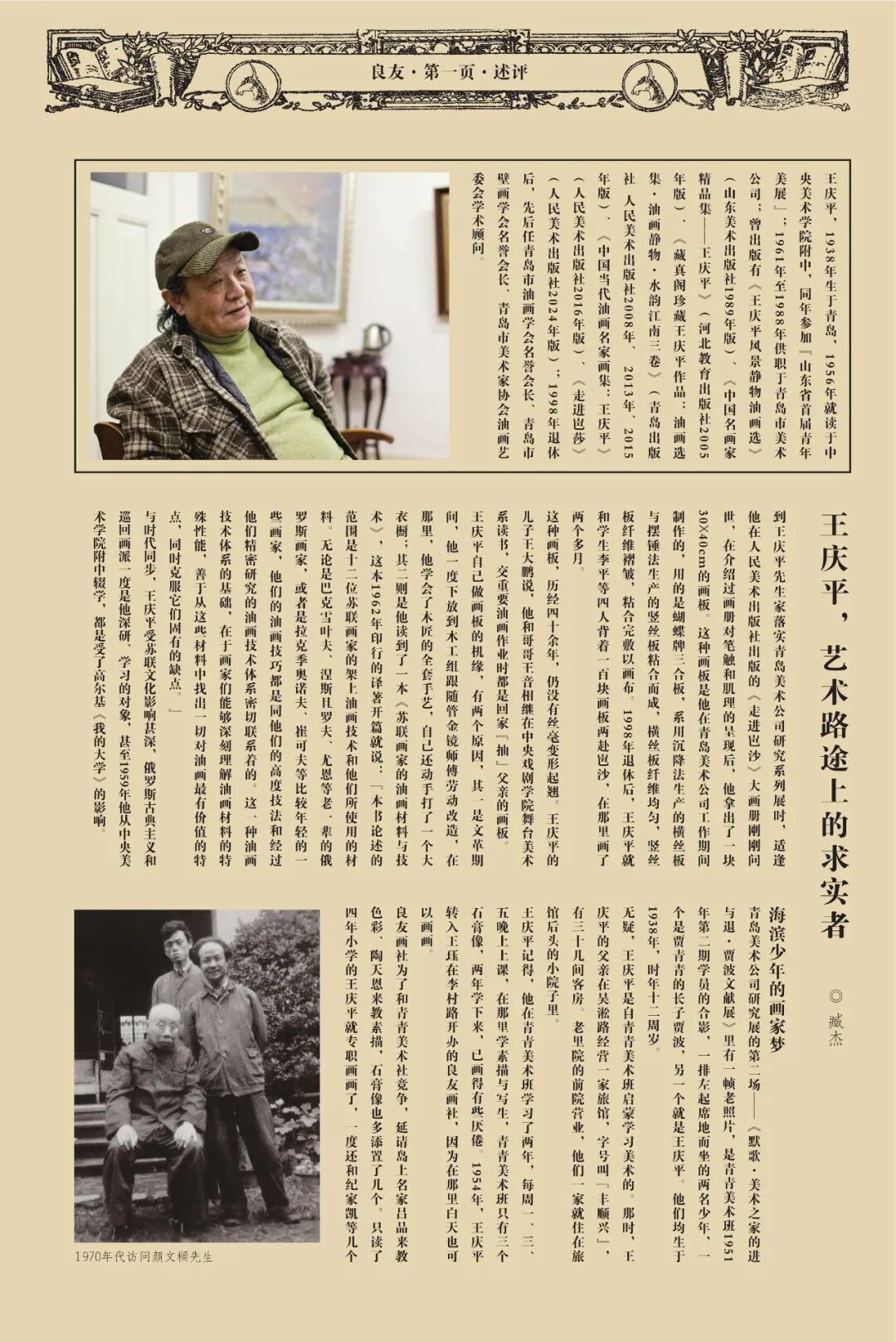 王庆平,1938年生于青岛,1956年就读于中央美术学院附中,同年参加“山东省首届青年美展”;1961年至1988年供职于青岛市美术公司;曾出版有《王庆平风景静物油画选》(山东美术出版社1989年版)、《中国名画家精品集——王庆平》(河北教育出版社2005年版)、《藏真阁珍藏王庆平作品:油画选集·油画静物·水韵江南三卷》(青岛出版社 人民美术出版社2008年、 2013年、2015年版)、《中国当代油画名家画集:王庆平》(人民美术出版社2016年版)、《走进岜莎》(人民美术出版社2024年版);1998年退休后,先后任青岛市油画学会名誉会长、青岛市壁画学会名誉会长、青岛市美术家协会油画艺委会学术顾问。