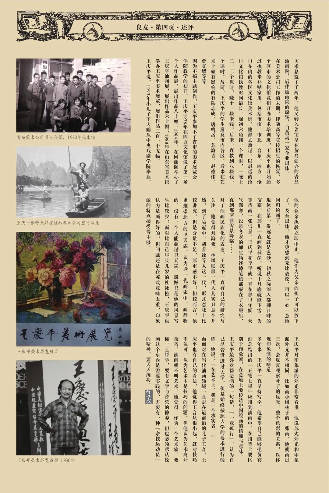 在青岛艺术圈,王庆平的个人存画是最多的,他有“藏画三千豪门布衣”的自况。在中国油画界,王庆平的作品集刊印,在老一辈画家中,也是质量与规模最多与最高的之一,不仅有“人美”的“大金袍”,还有多种在雅昌印行的巨制。