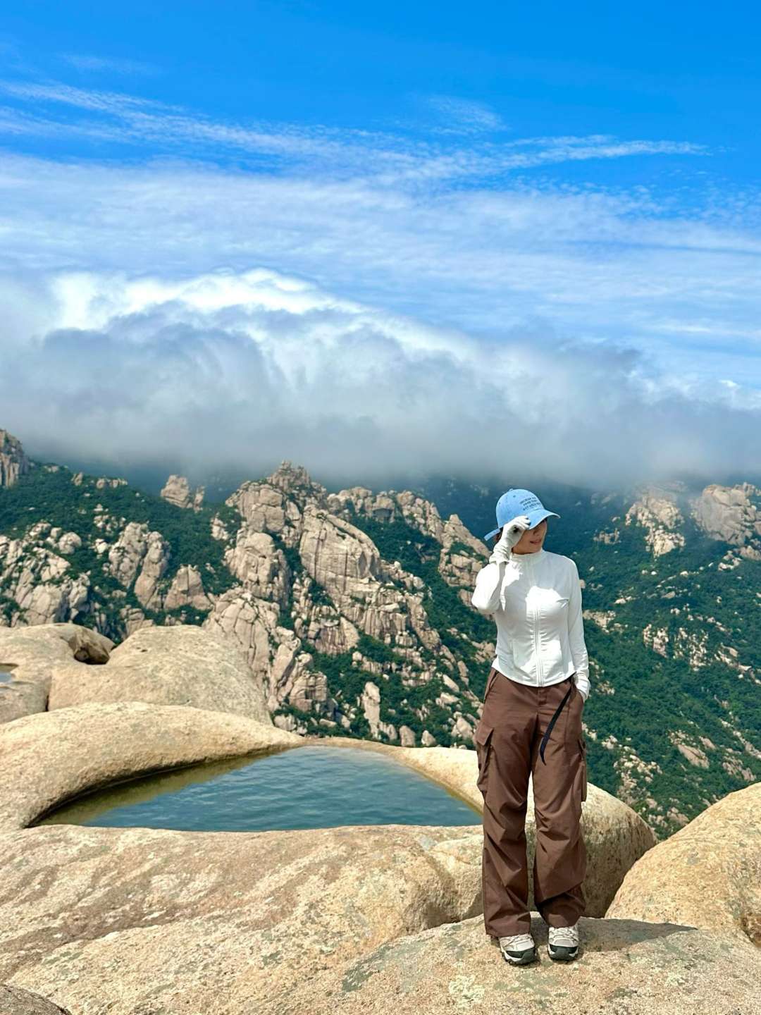 ①上半身速干防晒,外层徒步长裤;徒步鞋,徒步袜