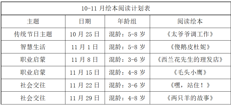 • 故事分享:一起阅读《太爷爷调工作》,大家用“善意”的谎言陪着太爷爷“调工作”,共同感受那份跨越年龄的亲情与理解。