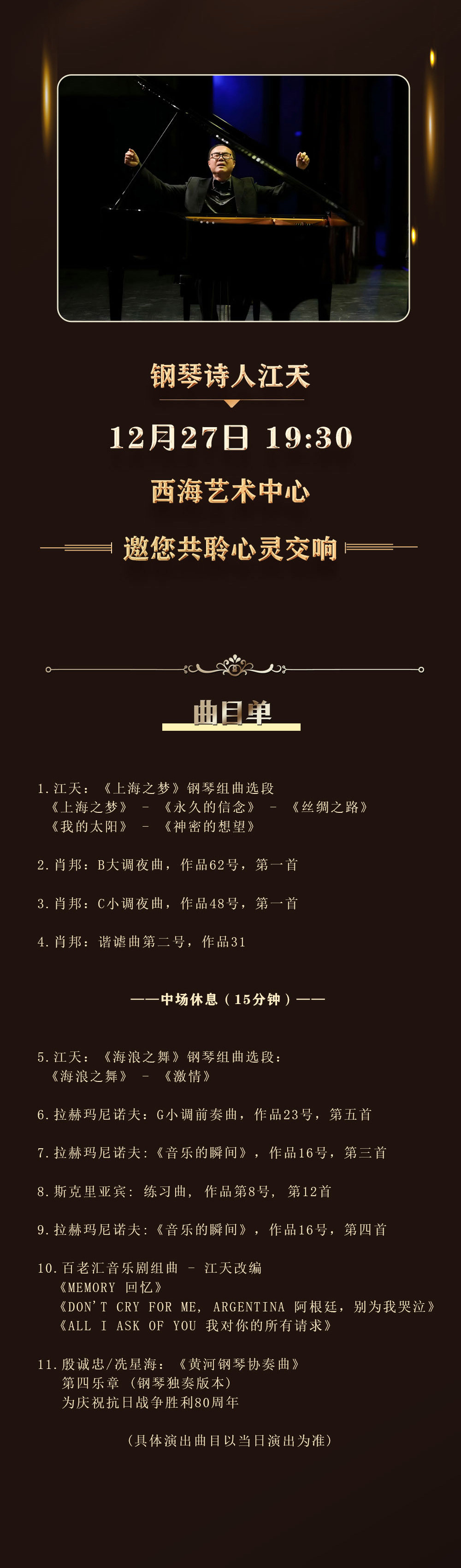 5、请保持场内安静,准时入场、按照票面座位对号入座,请勿在演出期间随意更换座位;迟到观众请在厅外等候,听从服务人员安排或等待演出间隙安静入场,若因迟到须等候入场,不得以此要求退换票;