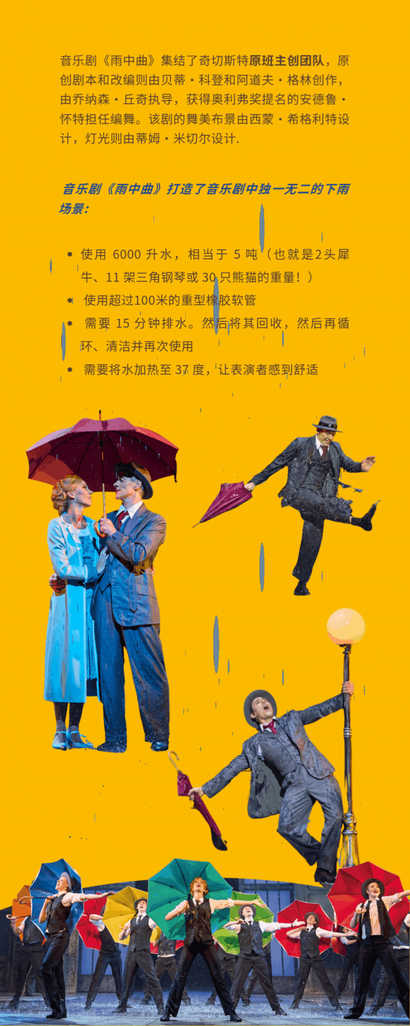 温馨提示:乐池前两排中间区域可能会感受到雨淋效果,请您根据自身需求选择座位。