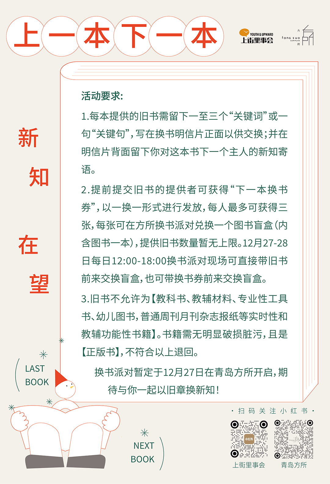 换书派对暂定于12月27日在青岛方所开启,期待与你一起以旧章换新知!