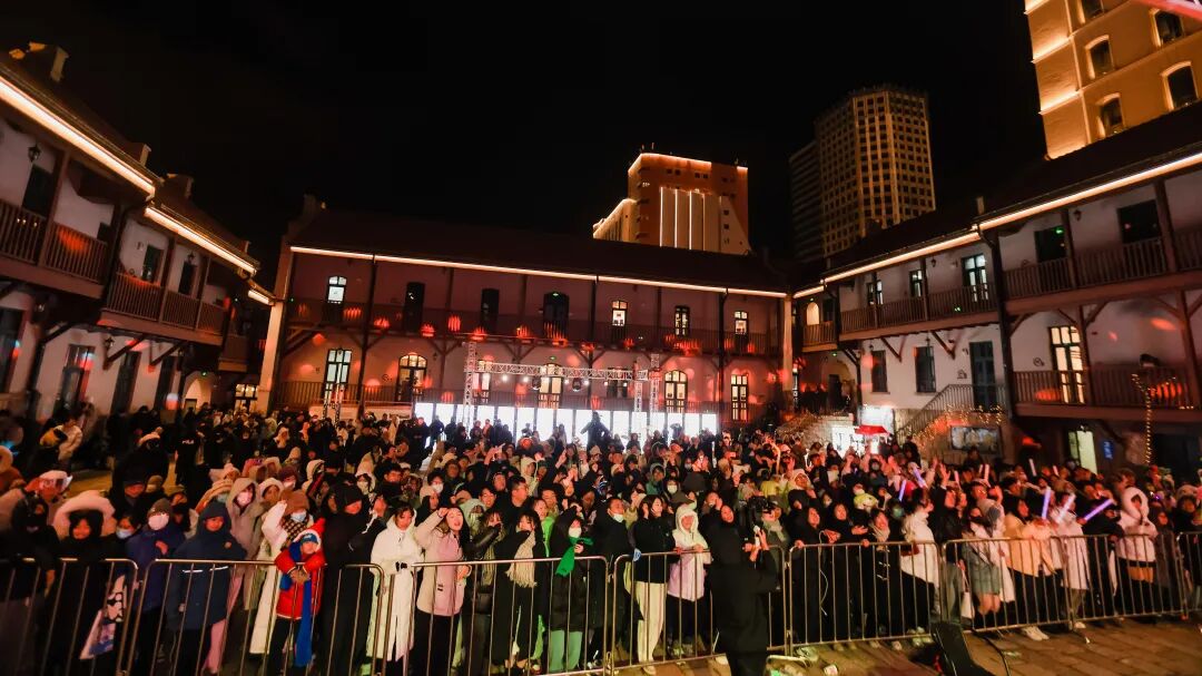 同时广兴里围绕电子仿真篝火起舞欢腾