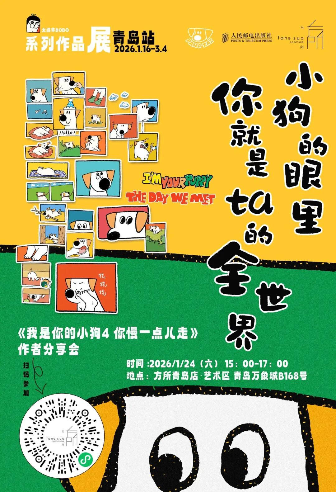 1月24日(周六)15:00,我们邀请大绵羊BOBO老师来到方所青岛店,与大家分享新书《我是你的小狗4 你慢一点儿走》的创作历程,聊聊“我是你的小狗”系列绘本创作背后的故事。