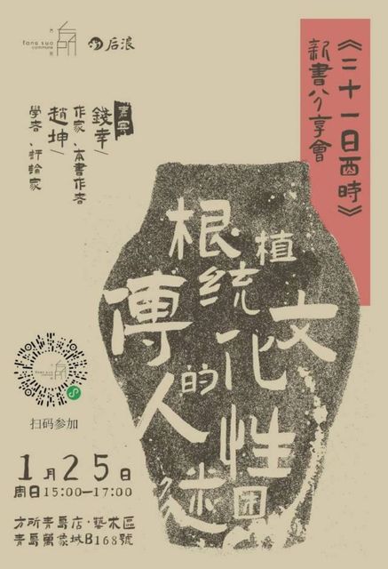 1月25日(周日)15:00,我们邀请《二十一日酉时》作者钱幸,山东大学教授赵坤,与大家分享这本书创作背后的故事。