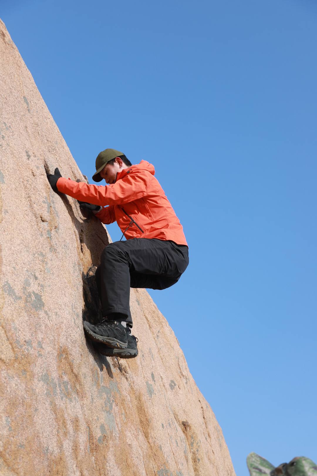①上半身内层速干衣,中间抓绒/羽绒保暖,外层防风外套;下半身打底速干裤,外层徒步长裤;徒步鞋,徒步袜