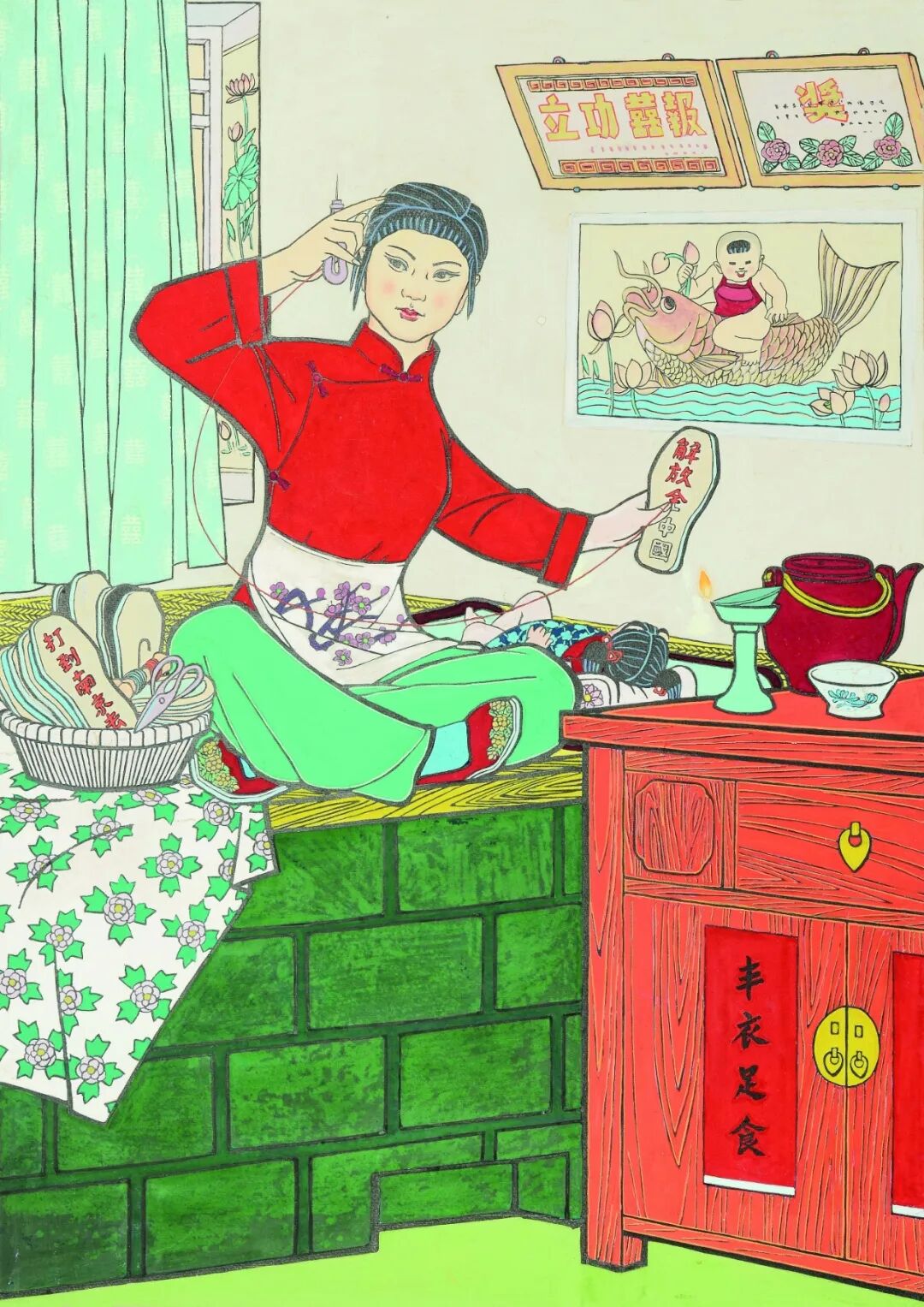 《纳出俺们心一片》| 鞠秀宾 | 63×45 cm | 1974年