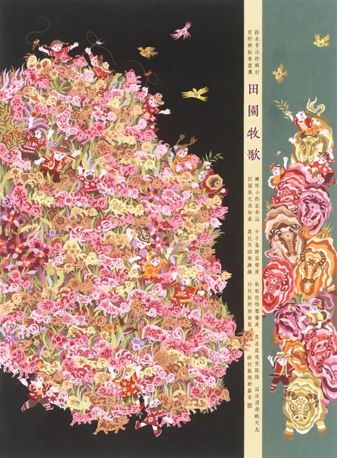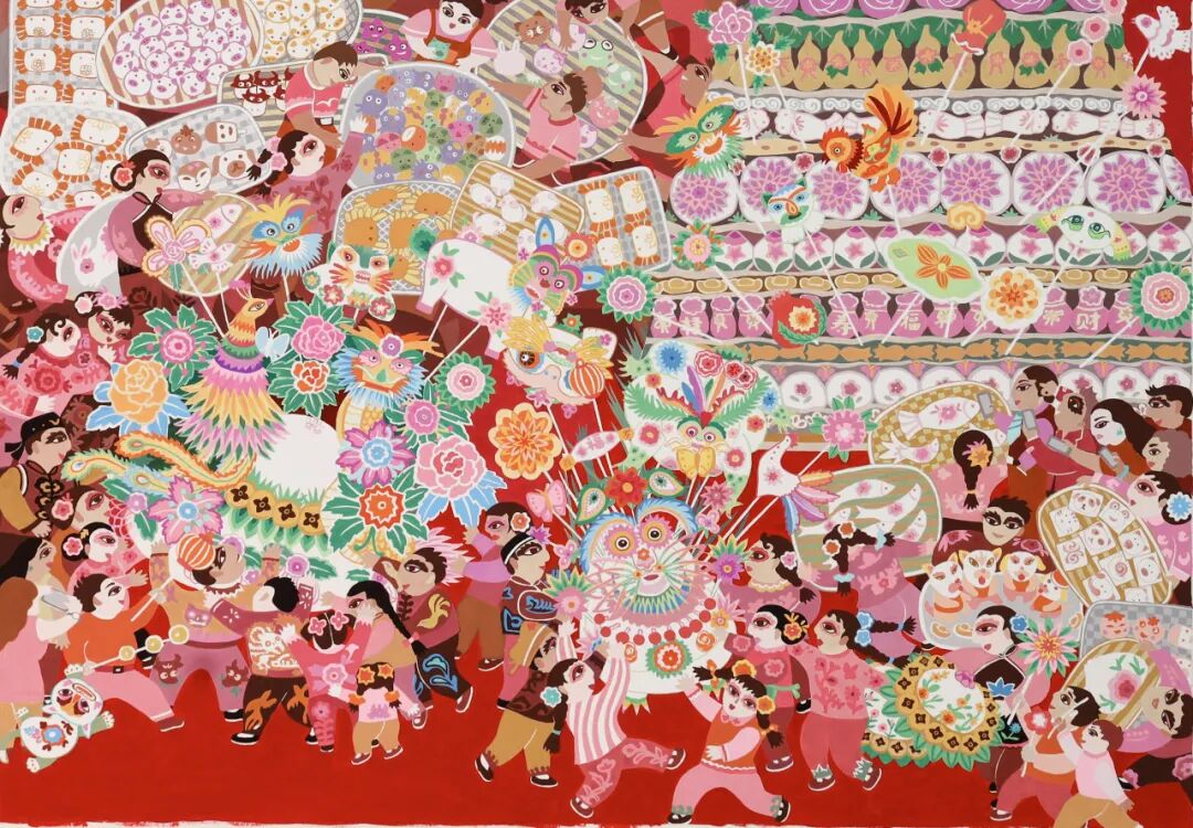 《四时鸣祥》| 高桂桂 | 77cm×200cm | 2025年