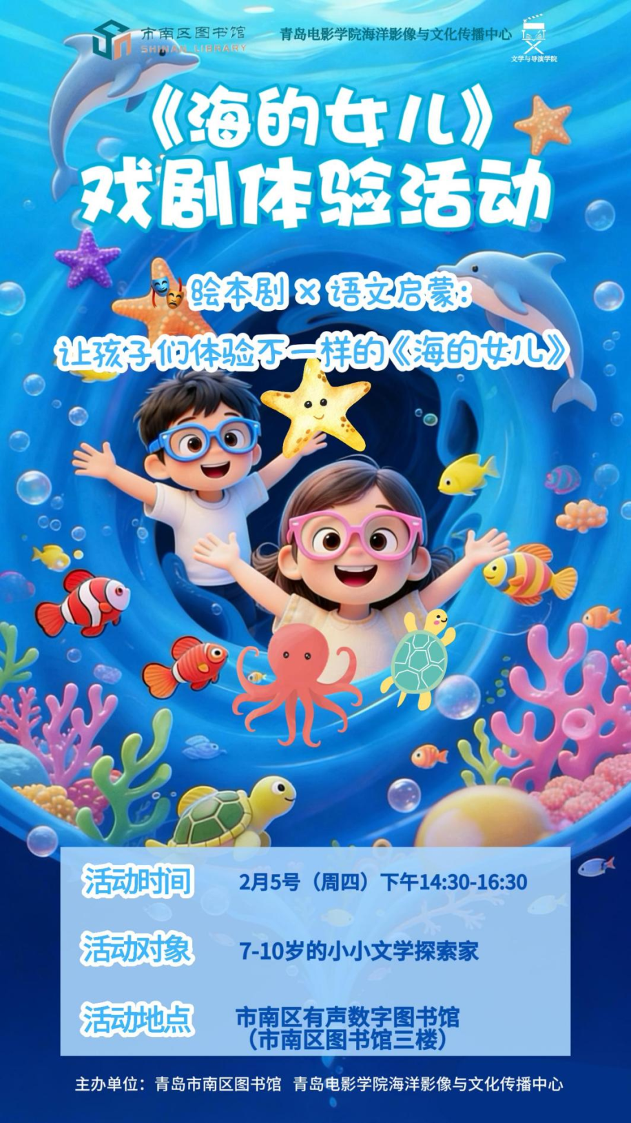 由青岛电影学院文学与导演学院戏剧影视文学专业教师精心打造,《海的女儿》戏剧教育体验活动邀孩子们开启一场深海奇旅。