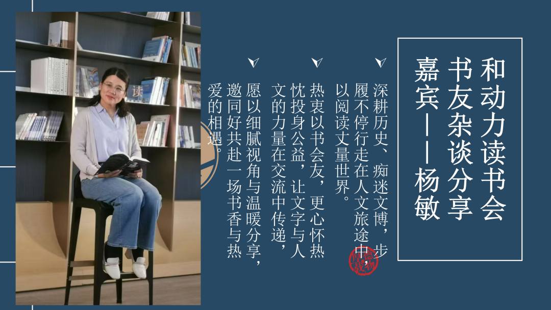 杨敏老师长期深耕历史与文博领域,痴迷文化遗产,步履不停行走于人文旅途,以阅读丈量世界。她热爱以书会友,并积极投身文化公益,始终以细腻的视角、温暖的讲述,传递文字与人文的力量。诚邀各位书友同行,共赴一场融合书香、艺术与思想的人文相聚。