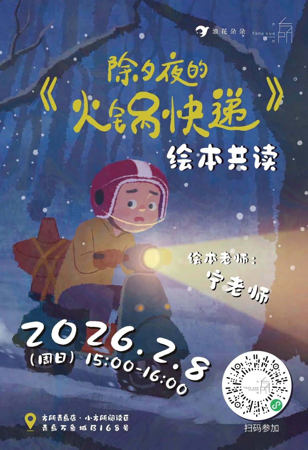 2月8日(周日)15:00,宁老师带小朋友们一起读《除夕夜的火锅快递》,让孩子了解快递员送快递过程中会遇到哪些问题,了解这个对他们来说既熟悉又陌生的职业。看到这个世界跟我们息息相关又很不相同的部分,看到组成我们生活的世界的另一面,一个更大的世界。