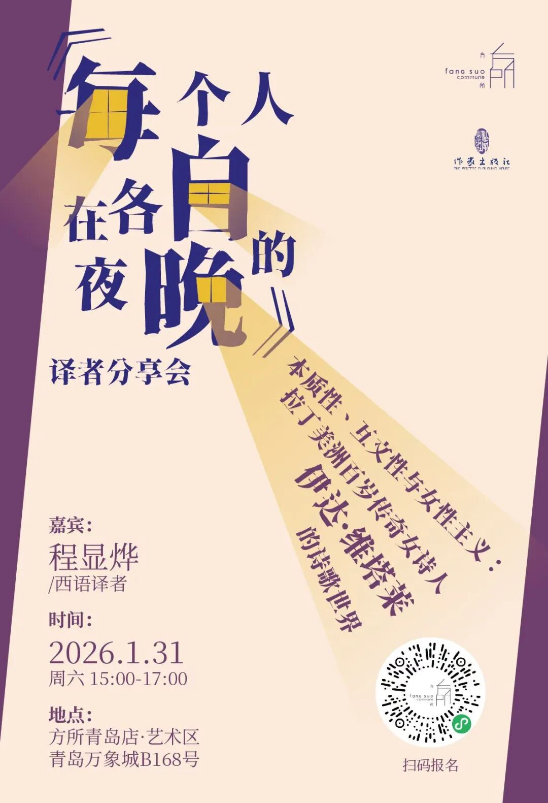 1月31日(周六)15:00,我们邀请伊达·维塔莱《每个人在各自的夜晚》西语译者程显烨,与大家分享这位传奇女作家的一生和创作背后的故事。