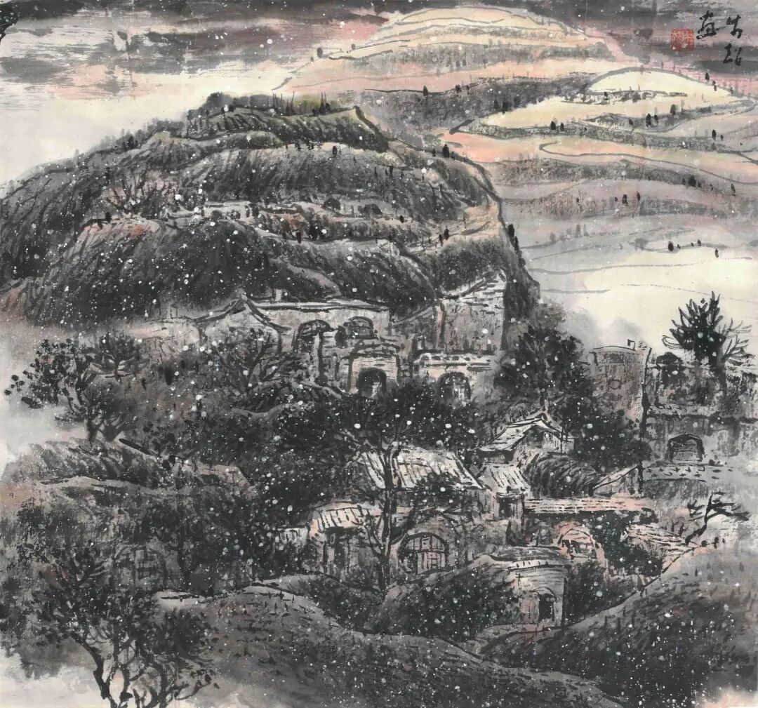 《塬上人家》|王步超|68×68cm|国画