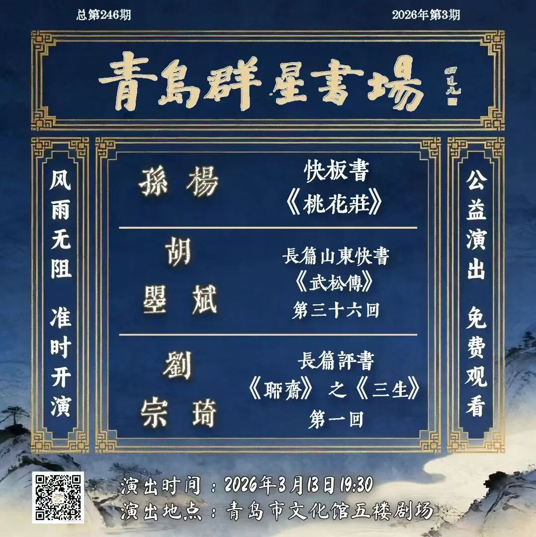 传承曲艺精粹,优化营商环境,赋能文旅融合。本周五晚青岛“群星书场”再次与您欢乐相约,精彩内容,欢乐无限,期待您的光临!