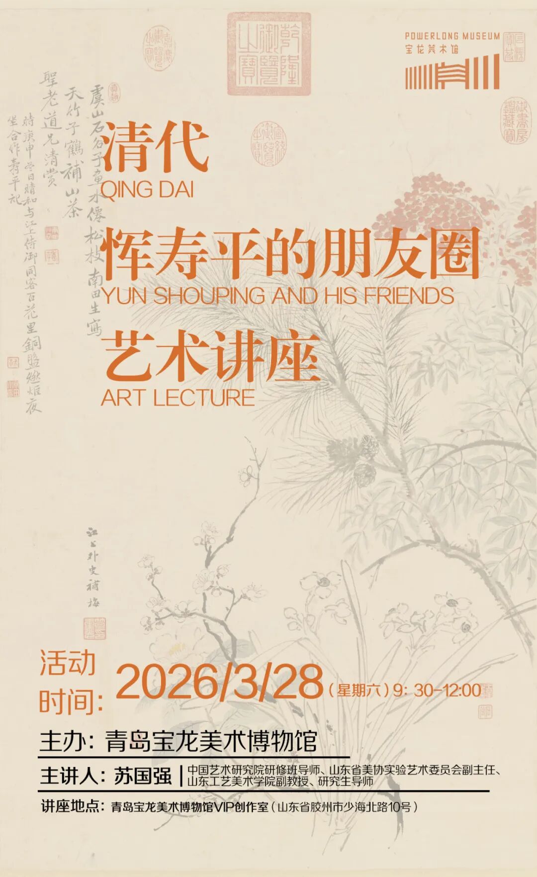 无论你是热爱中国传统绘画的观众,还是对文人生活感兴趣的读者,亦或是单纯想走进美术博物馆,度过一个有艺术陪伴的上午——3月28日,欢迎来青岛宝龙美术博物馆,走进恽寿平的朋友圈。