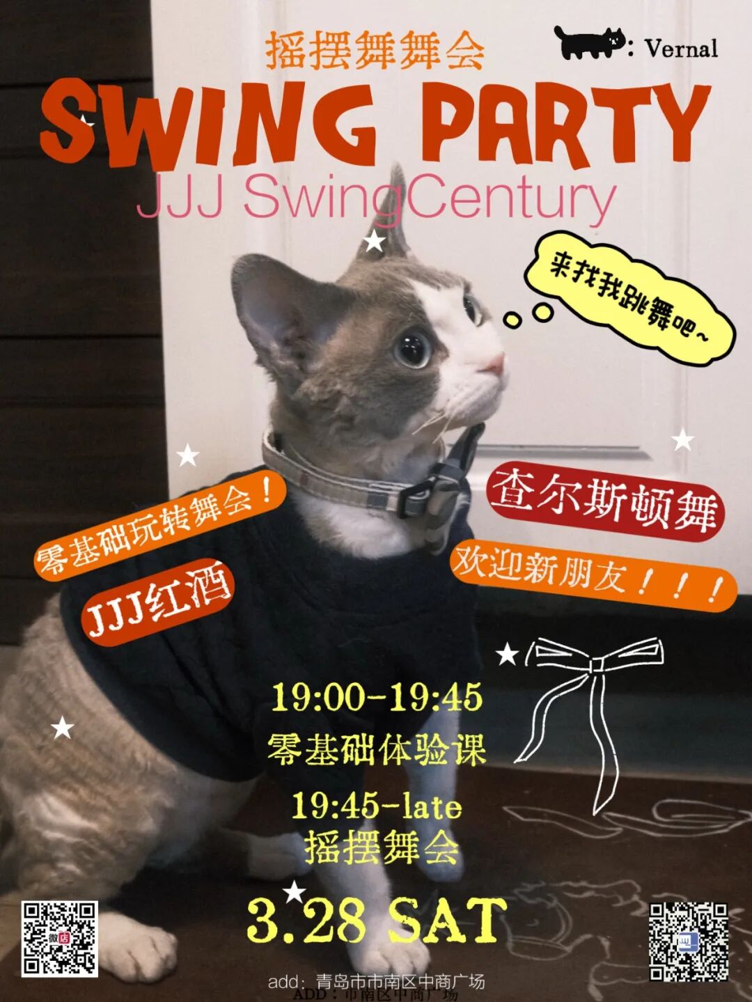 又到了每周最期待的舞会时间了!让我们在JJJ一起碰碰杯,跳跳舞,燃烧地板吧!舞会前专门为新手小白朋友设置了查尔斯顿舞入门体验课,帮助你快速融入舞会。