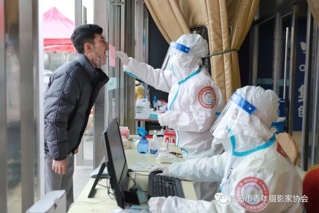 2022年3月18日,在青岛市李沧区浮山路街道九水路社区核酸采样点,医护人员、信息录入员、党员、志愿者大部分都是90、00后,他(她)们用行动书写青年担当
