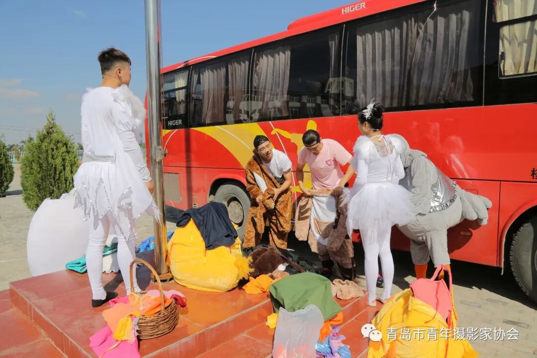 大巴车前是舞台,车后就是更衣室。剧社2015年成立至今已将公益儿童剧送至省外的内蒙古、新疆、宁夏、重庆、甘肃5个省的22所学校。(拍摄于2018年9月19日宁夏中卫康乐燕宝学校)