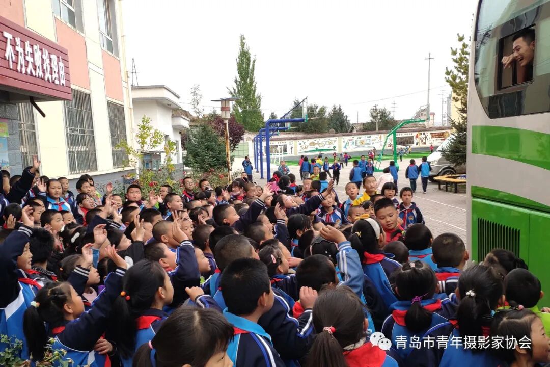 观看完演出,当地的小朋友们久久不愿离去,热情的和团员青年志愿者们挥手告别。(拍摄于2021年10月14日甘肃定西市渭源县中心实验小学)