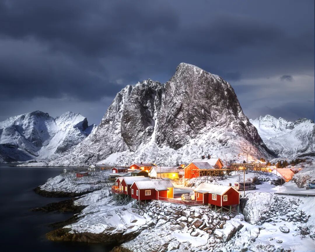 雪山夜景 罗弗敦群岛