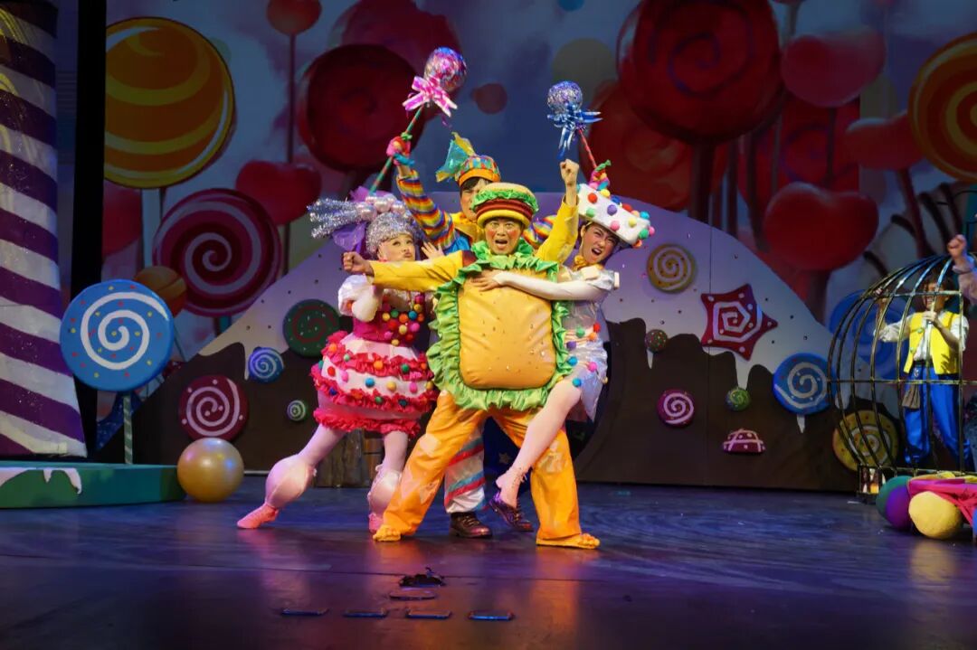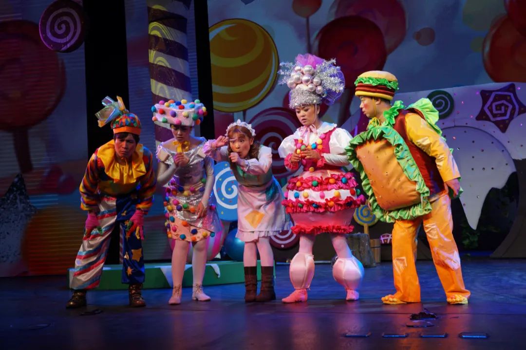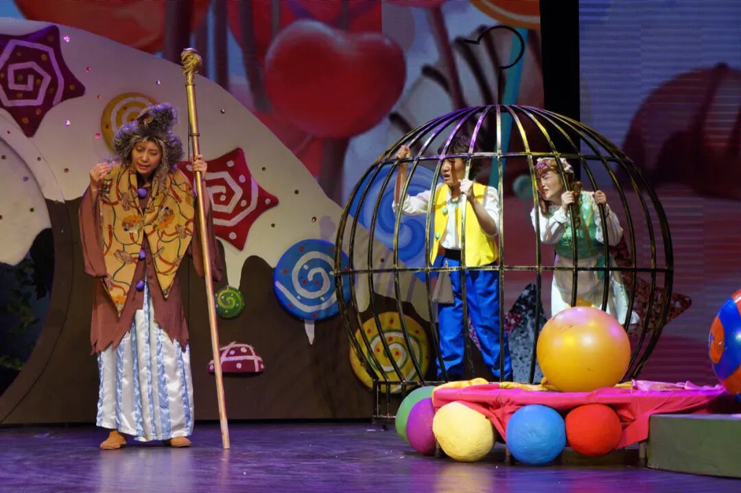 《糖果城堡》讲述的是一对勇敢的小兄妹如何战胜坏巫婆,获得自由与幸福的故事。现场,整个“糖果城堡”的壁垒都是由香甜可口的糖果和糕点做成的,蹦床、弹力球、秋千等游乐玩具也被搬上舞台,结合了色彩艳丽、夸张卡通的造型、朗朗上口的歌曲,让孩子们不知不觉就参与其中。