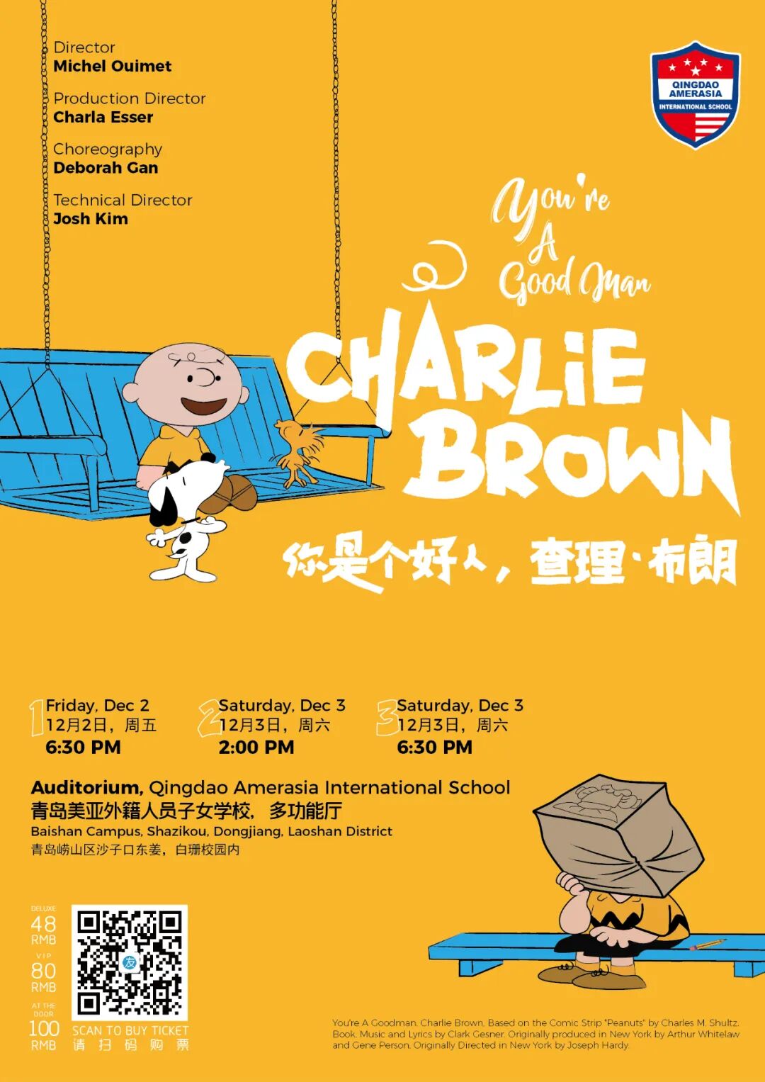 从1960、1970黑白电视年代开始,查理·布朗的电视剧集常演不衰,这个可爱的8岁男孩在生活中遇到的各种考验、遭遇的挫折磨难成为观众们的牵挂。直至今天,仍然有很多人在看查理·布朗,因为我们总能从他身上看到自己影子。他是一个乐观主义者,但摇摆不定,有时是因为自己的误判,但更多时候是成长过程中都会遇到的挑战——试图在这个世界中找到自己的位置。 《你是个好人,查理·布朗》作为舞台剧首演于1967年的纽约。2022年12月2日和3日,美亚中学生将演绎《你是个好人,查理·布朗》。剧中色彩缤纷的角色将带您进入一段迷人的旅程,查理·布朗、史努比、露西、莎莉、施罗德和小猪,还有伍德斯托克合唱团——一群精彩绝伦的鸟儿,所有人将投入真情和才能,为您倾情演出,精彩的表演将不容错过。