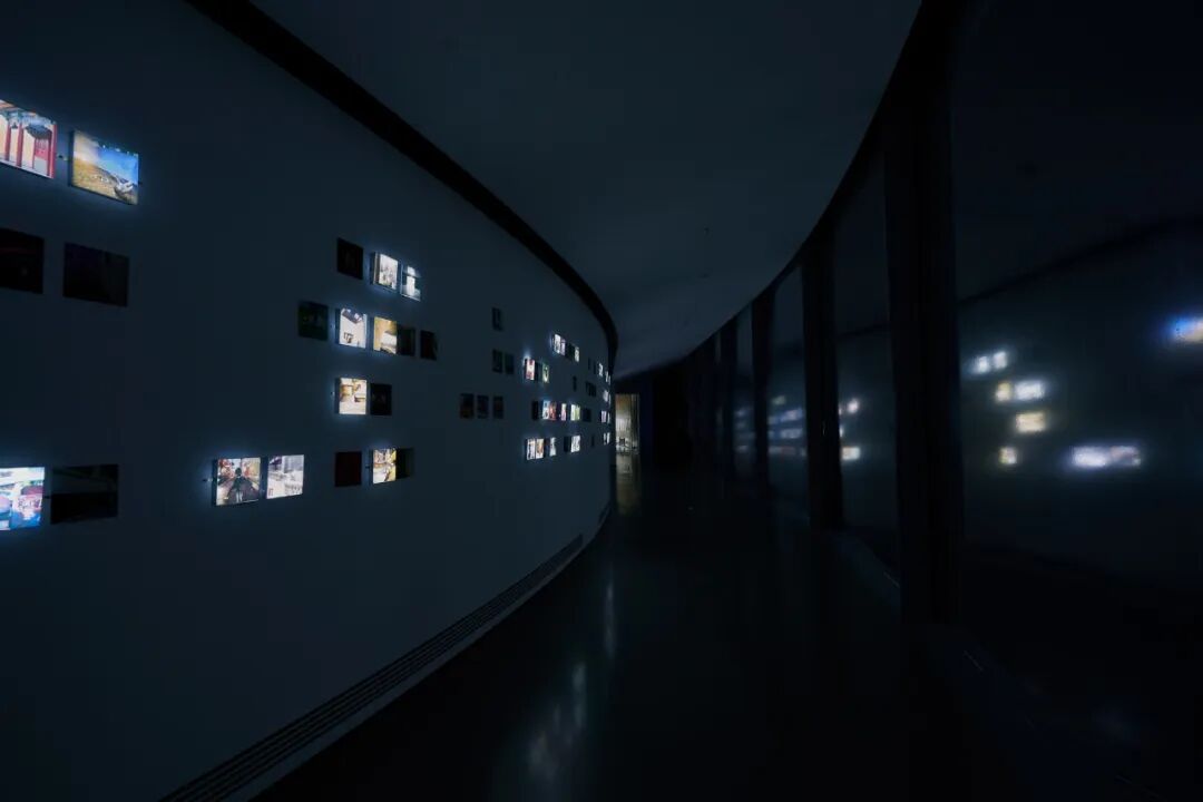TAG·西海美术馆正在展出的“黎晓亮:三个展——摇摇晃晃的白光,与黑舞台”的起始是一条长长的连廊,一束光打在“孤独星球”上,旁边的一面白墙,印着整个展览的第一句话——“生活就在你熟视无睹的瞬间”。
