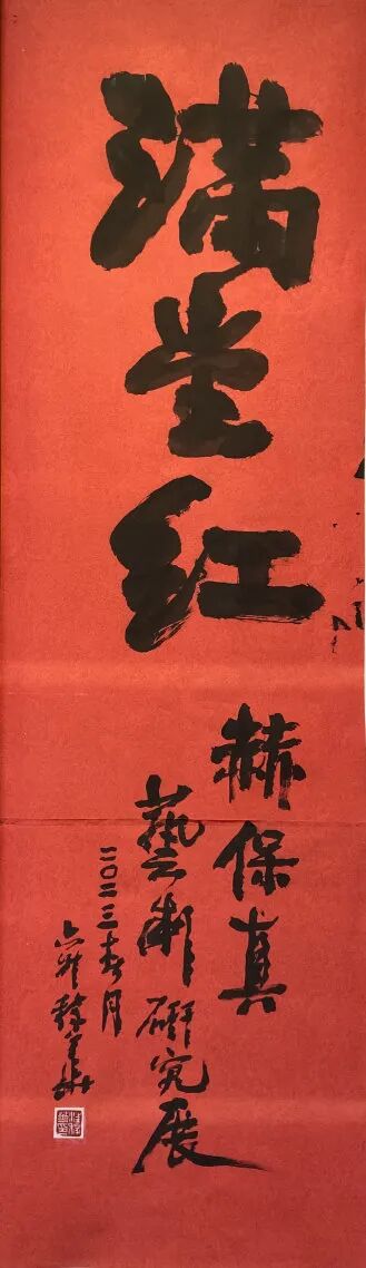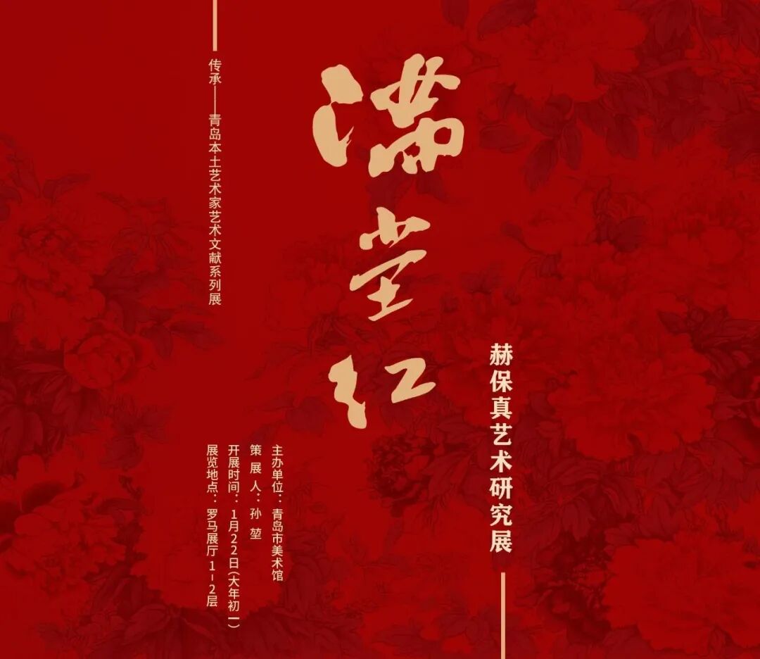 2022年初,青岛市美术馆开启自主策划展览“传承——青岛本土艺术家艺术文献系列展”,在“传承”大题目的统一提领下旨在彰显艺术家们的艺术理想和时代精神,此次展览作为“传承”系列2023年度“启幕”展览,在对赫保真先生的艺术生涯和艺术创作的全面梳理、研究基础上,通过花鸟画、山水画、人物画、国画教学四个单元300余件作品、手稿全面展示赫保真先生的艺术成就和贡献,亦有大量艺术文献首次展出。本展览题目“满堂红”取自赫保真代表作品重彩牡丹画《满堂红》,“满堂红”有全面胜利和取得成果之意,于赫保真先生的艺术而言,旨表现他在花鸟、山水、人物以及美术教有全面的非凡成就;而对关照当下而言,“满堂红”是以赫保真先生为代表的老一辈艺术家历经苦难与新生一路走来的所坚持的“浪漫主义”,其所蕴含的热情和能量亦是对当下最贴切的祝福和激励。